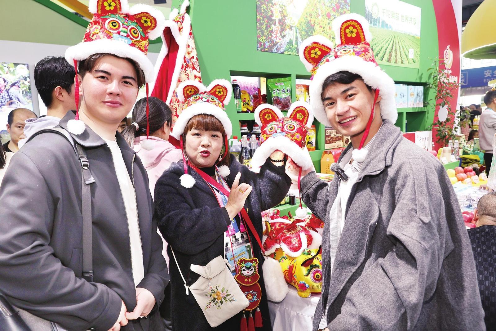 正在展位上整理工具的澄城面花非遗代表性传承人惠相楼介绍:“这是我们8名手艺人花了20多天赶制出来的,杨凌农高会是它的‘首秀’。”他指着作品介绍,“龙代表吉祥,元宝象征财富,金鱼寓意年年有余,苹果是平安的意思,合在一起就是‘国泰民安’的好兆头。”