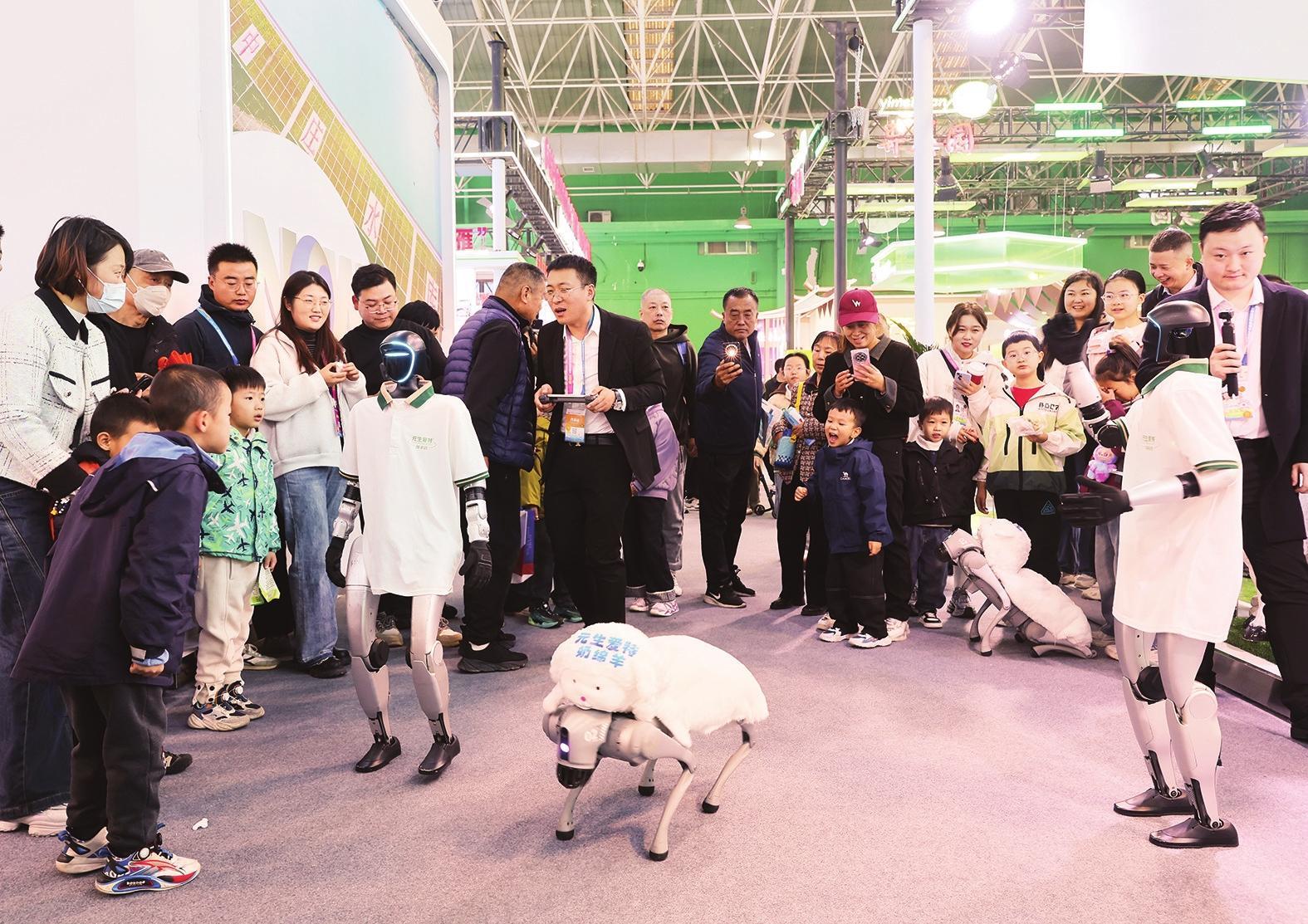 展会现场,机器人和机器狗的精彩表演吸引众人围观。
