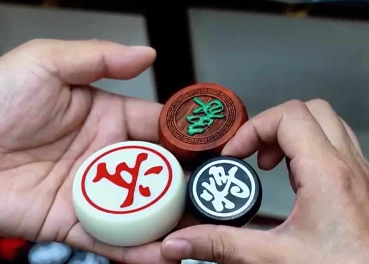王秀仕说:“以前象棋棋子直径最大做到6公分,现在为了迎合老年人需求,象棋棋子直径做到7公分,字看得清楚、手感又好。”