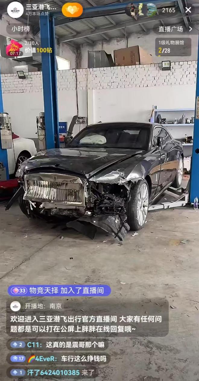 极目新闻记者注意到,该租车行购入闪灵事故车后,自10月28日起,连续三天进行直播,每天直播1小时左右,主题为“看看陈震的劳斯莱斯”。30日下午,该直播间在线观看人数达到2100多人,直播间观众都对车的后续充满了好奇。