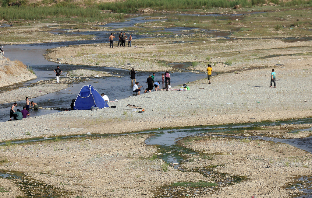当地时间2025年8月25日,伊朗德黑兰北部法沙姆地区,伊朗民众在一个几乎干涸的河床内野餐。视觉中国 资料图