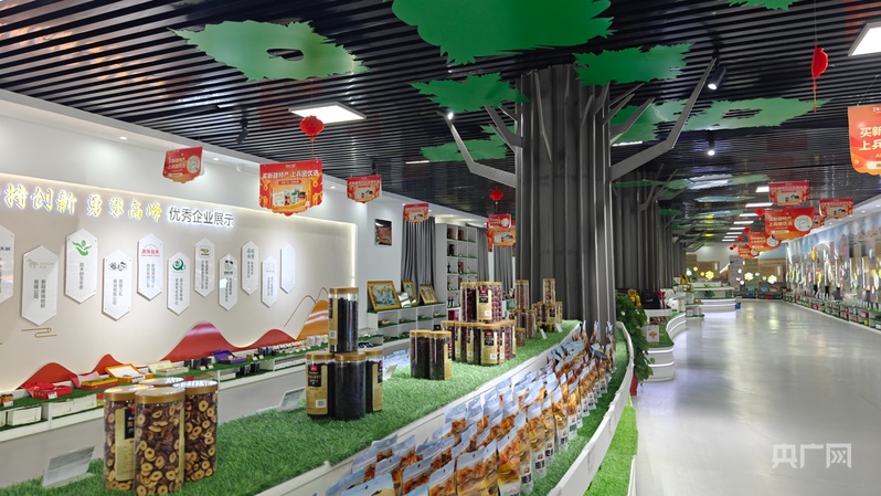 电商产业园内陈列着琳琅满目的新疆特产 (央广网记者郭璁悦 摄)