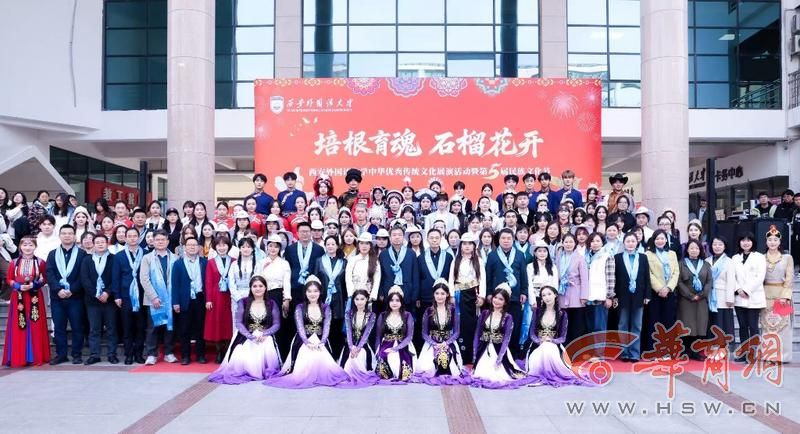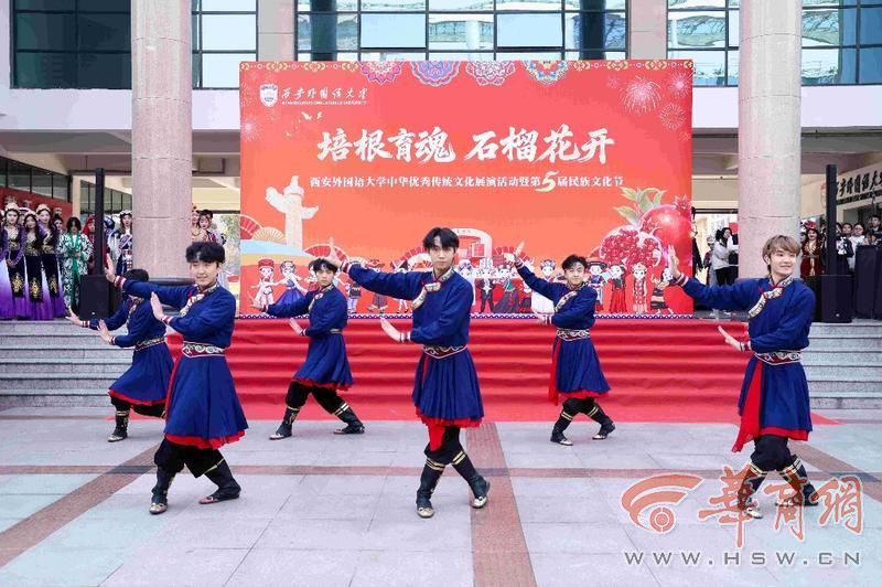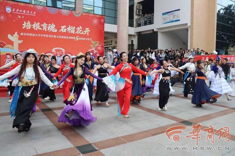 为深入学习贯彻习近平新时代中国特色社会主义思想,大力弘扬中华优秀传统文化,持续铸牢中华民族共同体意识,11月3日,西安外国语大学在长安校区大学生活动中心成功举办西安外国语大学中华优秀传统文化展演活动暨第五届民族文化节。驻陕工作组党委书记刘疆泉、副书记王梅林,西安市公安局特警支队支队长,西安交通大学励志书院党总支书记、院务主任徐慧,全国民族团结进步模范个人库来西·依布拉音以及西安外国语大学党委书记刘振涛,校长吴耀武,副校长李京昊等校内外嘉宾出席活动,与近千名各族师生共赴这场文化交融的盛会。