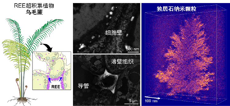 稀土元素在乌毛蕨中生物矿化为独居石纳米多晶聚集体。(研究团队供图)