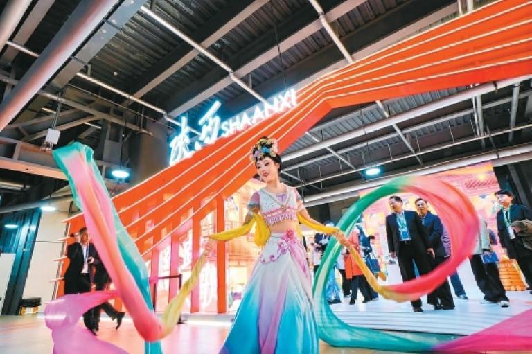 以唐风为主题的进博会陕西展区