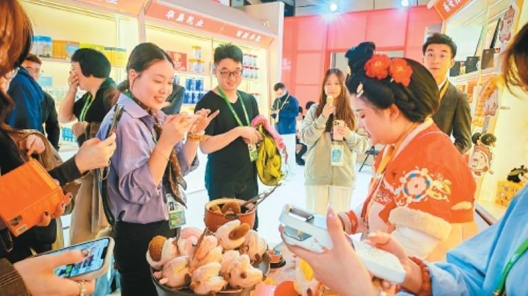 “借助进博会这一国际舞台,我们希望将西安本土文化推向世界各地,让更多人认识西安、了解西安、爱上西安。”大相文创(绒馍馍)联合创始人张博表示。