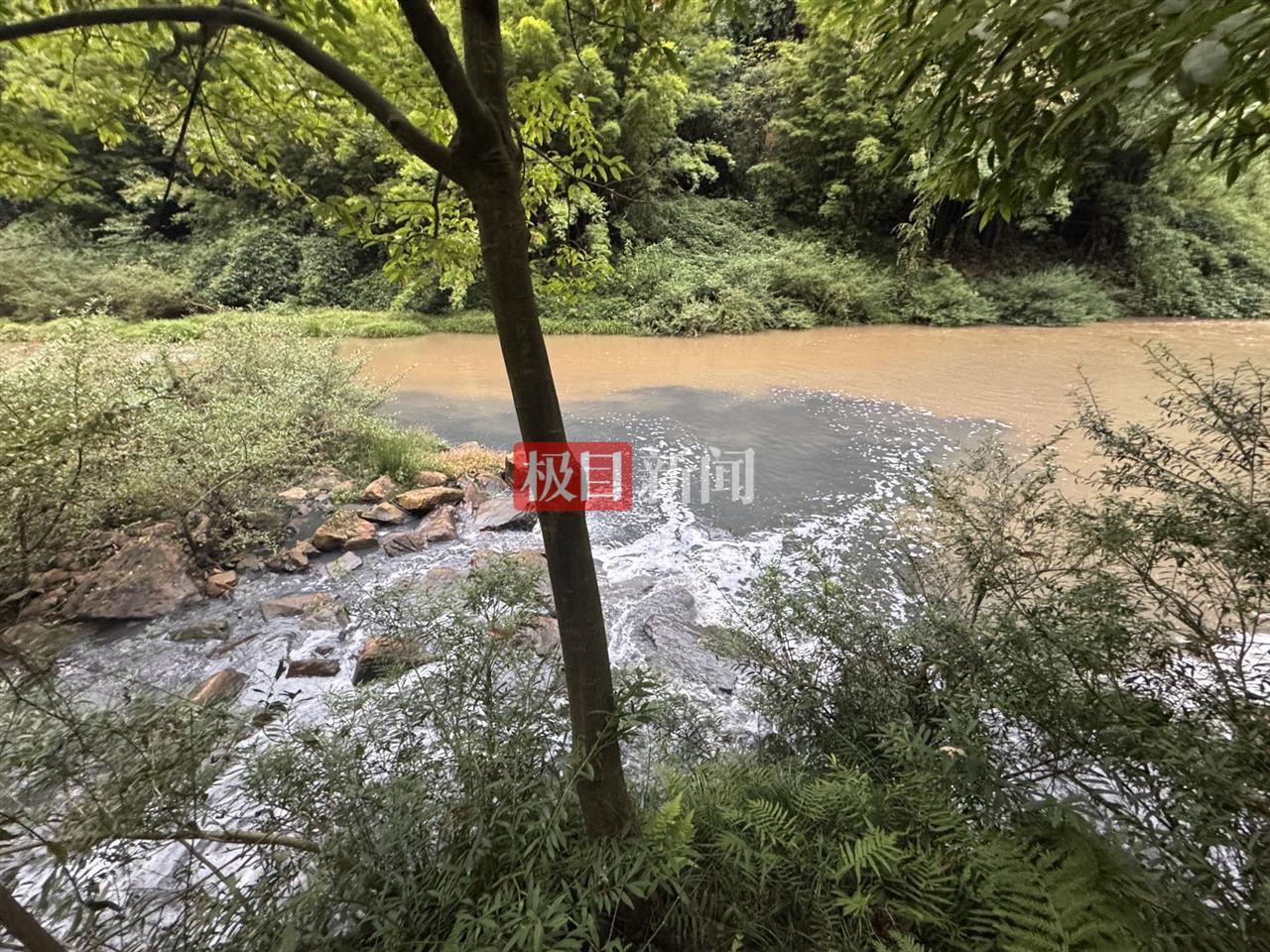 10日,极目新闻记者赶赴南川区南平镇实地走访孝子河,看到孝子河在峡谷间流淌,两岸青山连绵环境优美,但格格不入的是峡谷中间流淌着的乌黑色河水,河面漂浮着泡沫,味道刺鼻难闻。