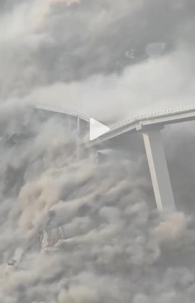 11月11日,网传四川省阿坝州马尔康市双江口水电站红旗特大桥发生垮塌。视频显示,该桥桥体坠入下方的足木足河中,腾起巨大烟尘。