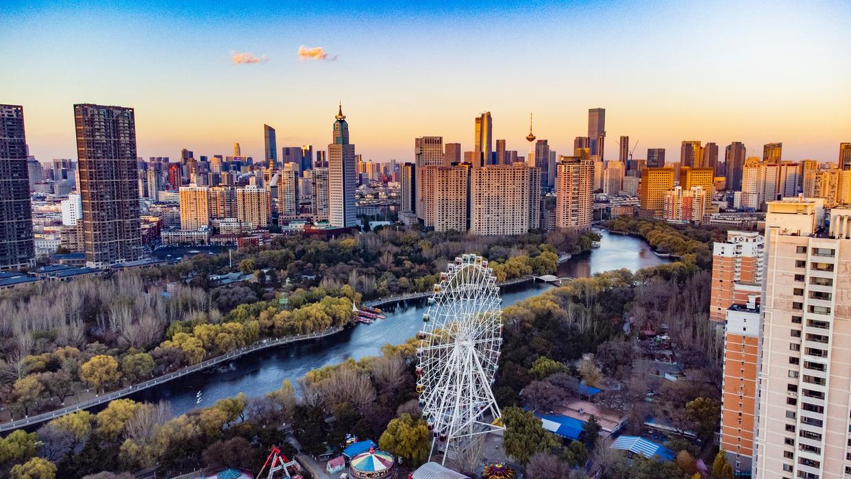 11月9日拍摄的辽宁省沈阳市和平区南湖公园景色(无人机照片)。新华社发(邹新江摄)