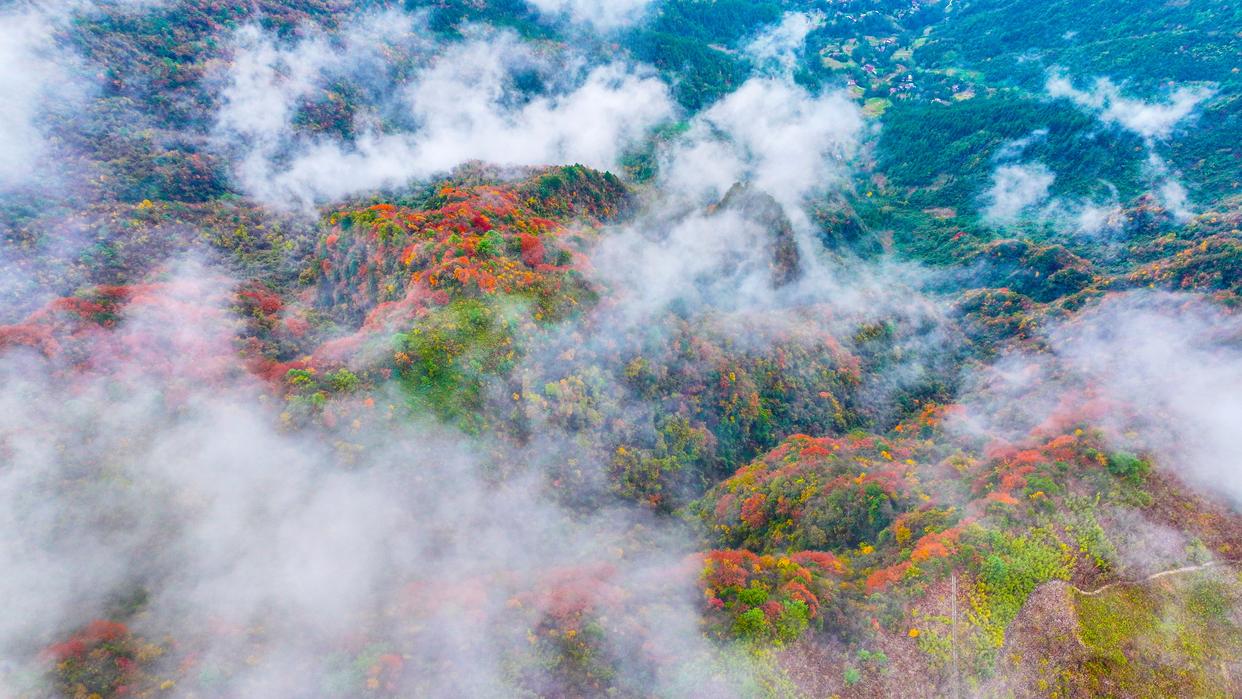 11月12日,四川省达州市宣汉县巴山大峡谷雨后云雾缭绕,美如仙境(无人机照片)。新华社发(张平摄)
