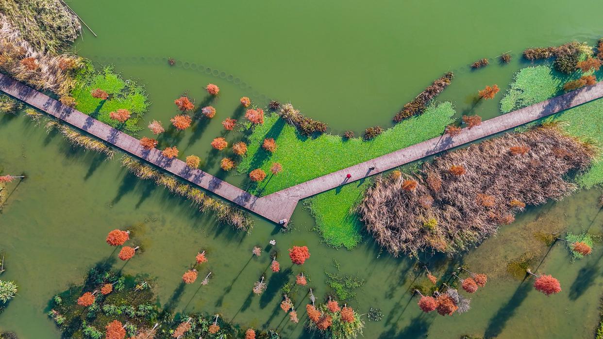 11月12日拍摄的江苏徐州九里湖国家湿地公园(无人机照片)。新华社发(白雪摄)