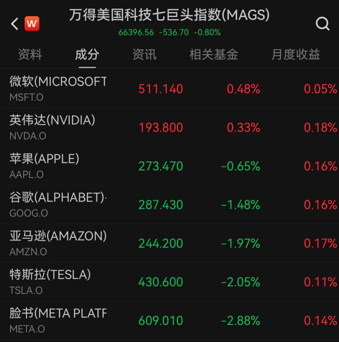 美股科技七巨头多数下跌,国际油价显著下跌,黄金价格大幅上涨。
