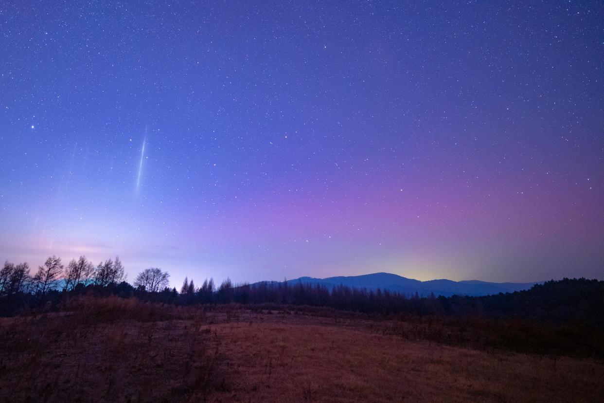 11月12日在黑龙江省尚志市亚布力镇拍摄的绚丽极光与光柱。新华社发(刘大鹏 摄)