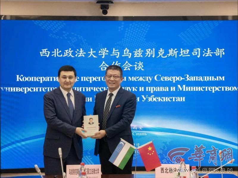 2025年11月12日,乌兹别克斯坦司法部副部长拉比耶夫·谢尔扎德、塔什干国立法律大学校长鲁斯塔姆别科夫·伊斯兰别克等一行访问西北政法大学,双方举行合作会谈并签署《“中国—中亚命运共同体法律机制研究”合作协议》。