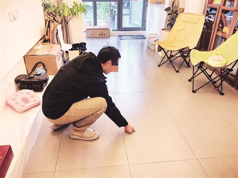 11月16日,招商依云曲江小区业主触摸地板,感受不到地暖的温度。
