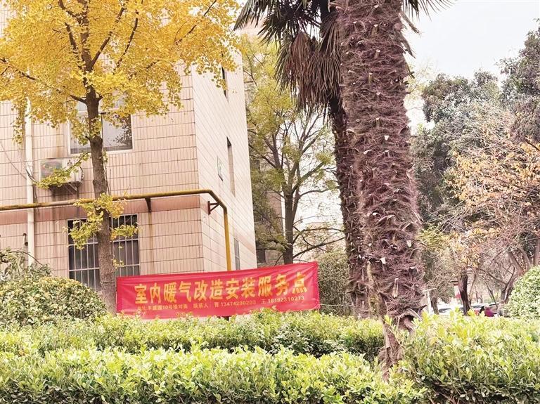 丰盛园小区里宣传室内暖气管道改造的横幅。