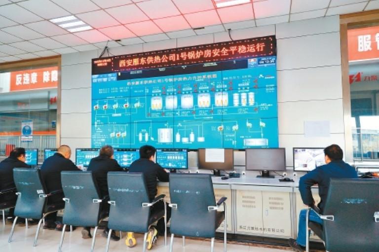 在西安市热力集团雁东供热有限公司,调度员紧盯大屏,及时调整锅炉运行参数。
