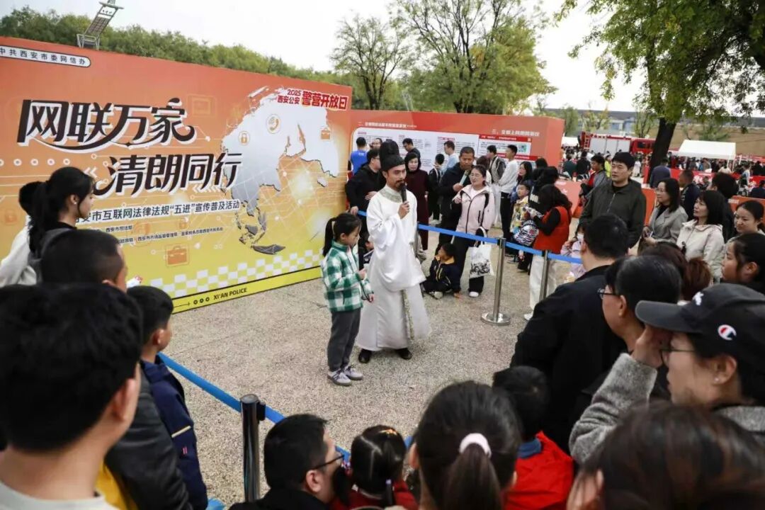 警民联动,打造普法宣传“零距离”。11月1日,创新推动“警-网联合”模式落地见效,将网络普法活动以重要组成模块方式嵌入市公安局第三届警营开放日联动开办,在大明宫广场设置普法墙、游戏互动、表演互动、合影打卡四大展区。邀请西安城墙“金吾卫”、大唐不夜城“李白”等本土IP现场开展“引古通今”宣讲和有奖互动问答,群众通过“清朗网络 我有一套”“打破谣言飞盘挑战”等游戏深入理解法律知识,实现了“娱乐式普法”与“警示性教育”的多重收效。15家中央和省、市知名媒体全网同步现场直播,实现了线上线下同频共振,受众群体剧增的绝佳效果。