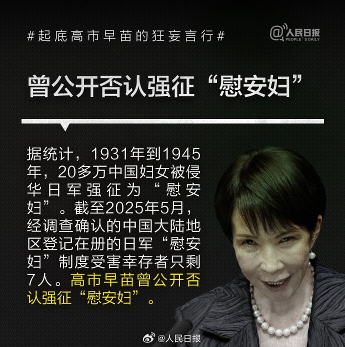 1993年高市早苗当选日本国会议员后,公开主张修改日本和平宪法、扩大和改名日本自卫队、参拜靖国神社,其言行与许多臭名昭著的日本右翼政客如出一辙。高市2014年来参拜靖国神社超10次。历史的教训岂敢忘却!我们绝不允许日本军国主义复活,破坏世界和平稳定。
