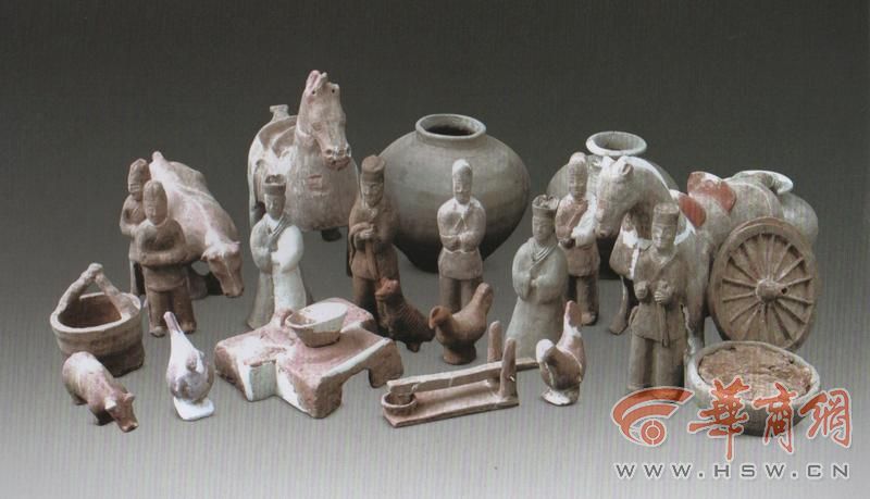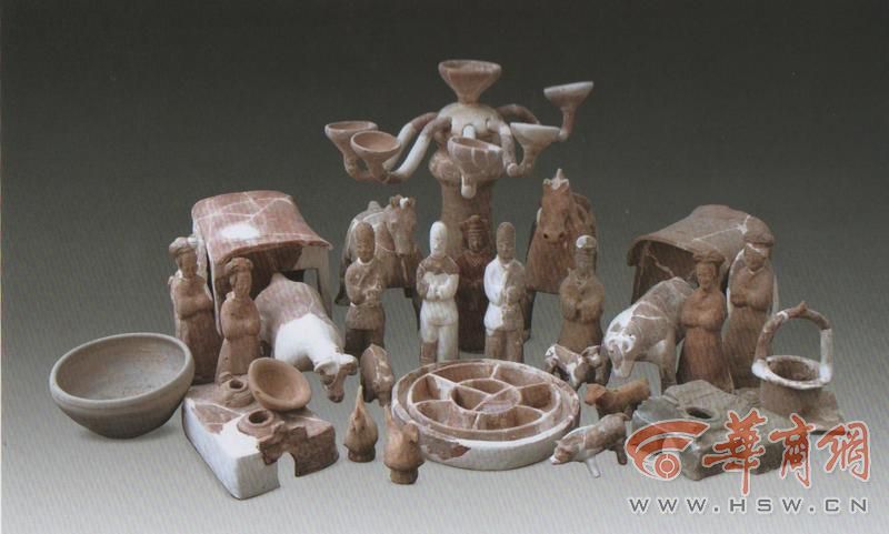 出土陶俑、陶牛车、陶鞍马、连枝灯等最具特色