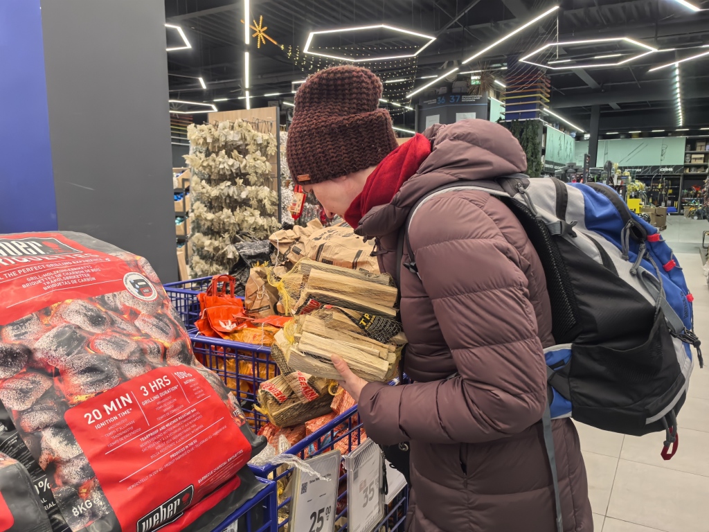 当地时间2025年11月9日,乌克兰基辅市民在商场购买木材,以便在停电期间生火取暖。新华社记者 李东旭 摄