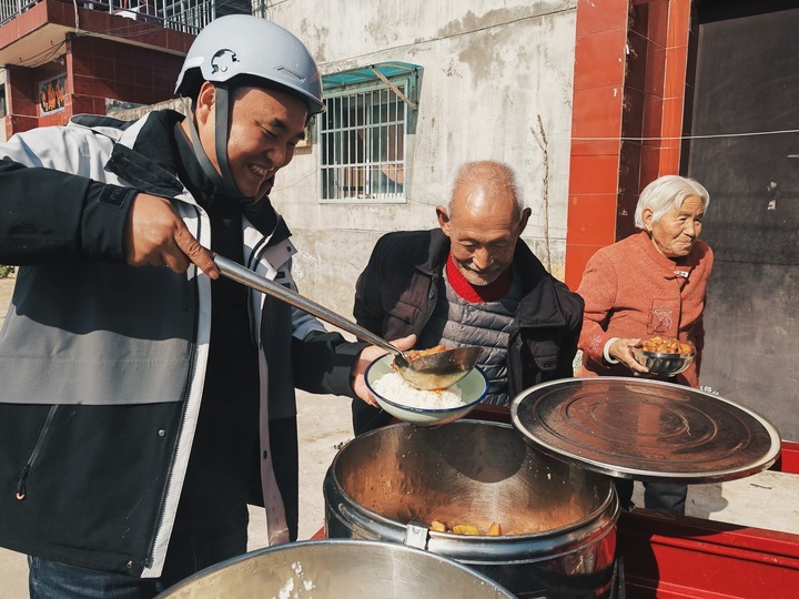 “晌午饭来咧,取碗!”下午2点19分,当庞富强把饭端到94岁的老人吴芳莲家中时,午饭全部送完。“我这走一圈,等于把每个老人都看了一眼。”庞富强说,“我们发了视频,老人的儿女们也能看到。大家背井离乡,在外打拼很不容易,看到老人吃得好,身体好,他们也常常私信感谢我。”