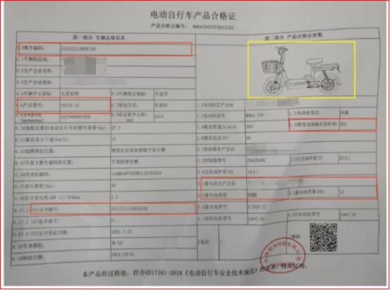 根据相关法律法规要求,出厂销售的电动自行车应有产品合格证,一车一证。消费者在购买时可核对随车附带产品合格证上的产品型号、整车编码等信息参数与实车一致。