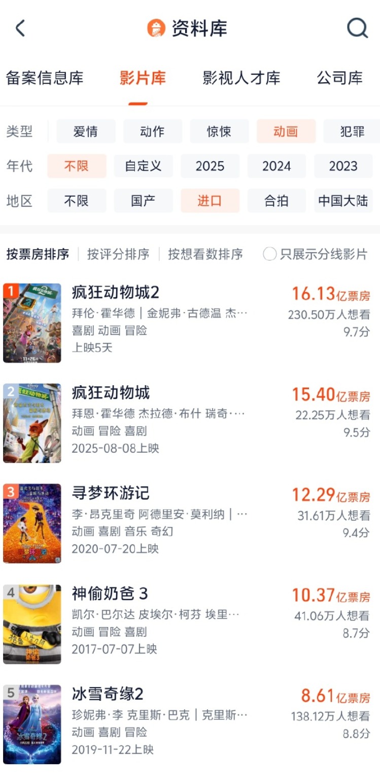 《疯狂动物城2》上映仅五天,票房便强势突破16亿元。据灯塔专业版,截至11月30日0时,影片《疯狂动物城2》票房已突破16亿,超过第一部《疯狂动物城》15.40亿的票房成绩,成为中国影史进口动画票房冠军!