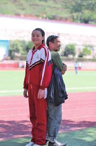 询问10岁、身高1.72米的孙女杨肖文欣能否当运动员一事
