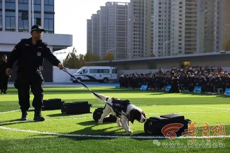 刑侦大队警犬“啸天”和“北斗”在训导员的指挥下,展示了服从、扑咬、搜爆的特殊本领,成为现场的人气焦点,引得学生们阵阵欢呼与掌声,让大家切实感受到警犬在平安守护中的重要作用。
