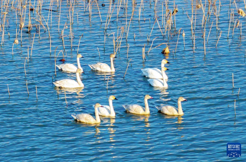 12月1日,群鸟在江苏兴化里下河国家湿地公园内栖息(无人机照片)。
