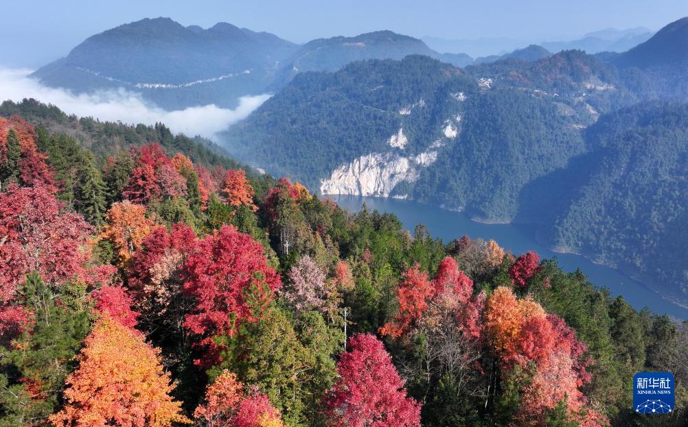 12月1日在湖北省宣恩县珠山镇拍摄的山间一景(无人机照片)。