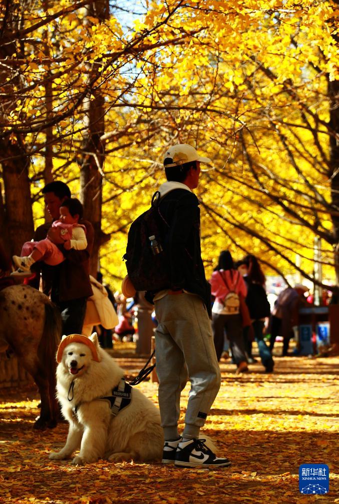11月30日,在云南省腾冲市固东镇江东银杏村,游客在打卡拍照。