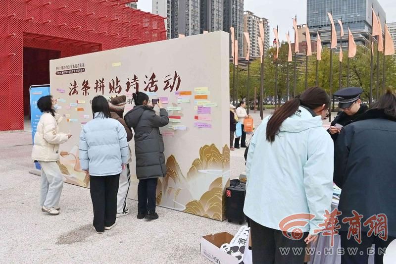 “原来民法典的发展历程像跳高一样充满挑战,拼贴诗里还藏着这么多法律典故,这趟学法之旅太有意思了!” 市民王女士拿着刚集齐的 “秦岭四宝” 主题贴纸,兴奋地分享着参与法治宣传活动的感受。