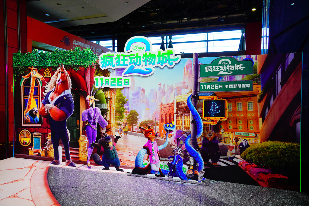 2025年12月3日,北京,西单大悦城首都电影院内摆放的《疯狂动物城2》巨幅海报。 视觉中国 图