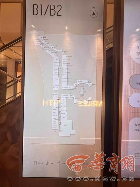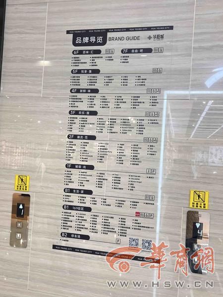 和大多数商场一样,华阳城的电梯也是有扶梯和直梯。扶梯在商场中央,直梯就设置在其中一座扶梯附近。这个商场无论是扶梯还是直梯,都比较好找。记者观察了直梯里关于商场各层的标识,也比较简单,1-6楼表示地上的层数,B1-B3表示地下的层数。