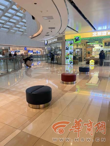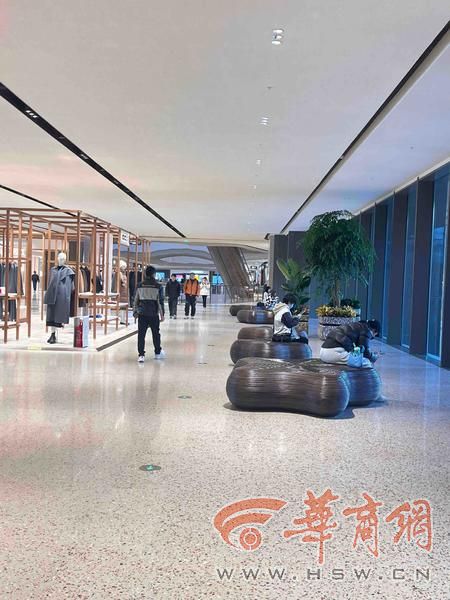 该商场还有一个问题,就是主商场内每层的公共区域,都没有设置休息的凳子,不管是在扶梯附近,还是在各商铺门口,都空空如也,逛累了想歇歇,找不到休息的地方。随后记者在卫生间门口看到有扫码付费的按摩椅,在上面坐一会儿就会提示扫码付费,也没法安心休息。