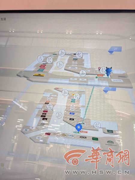 此外,该商场的指示牌也充满了“黑科技”,在每层楼的指示牌处,有电子导览图,如果你想从你现在的位置出发去某个店铺,点击屏幕,就可以出现线路图。同样你想知道无障碍卫生间或者母婴室的位置,点击屏幕也能显示位置及线路图,用着非常便利。