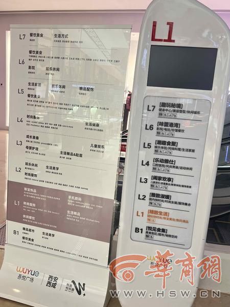 华阳城商场每层扶梯的电梯入口旁边,都放置着三个指示牌,分别是各个楼层主要的功能,如服饰、美食、娱乐等,还有一个是美食指南,标注着美食品牌的分布,另外一个指示牌是品牌的分布。记者看到,这些指示牌上的字比较小,密密麻麻的,老年人看起来比较吃力。