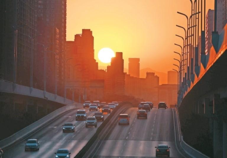 手机拍摄的“日落大道” 记者 谢伟 摄