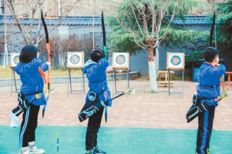 碑林区雁塔路小学羿弓社的孩子们练习射箭
