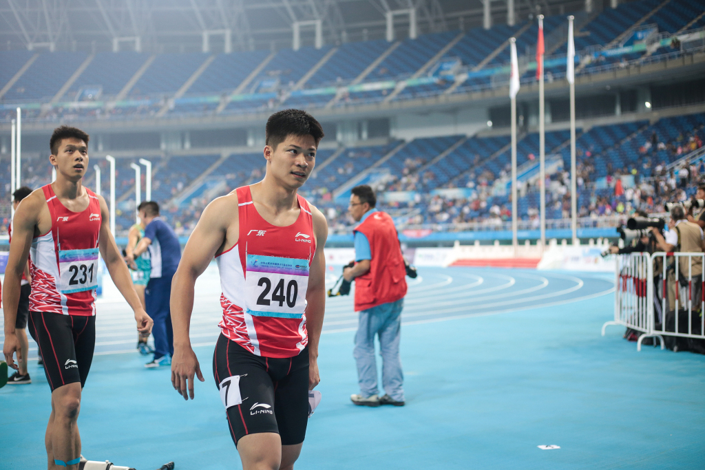 然而,命运像是和苏炳添开了个玩笑。那一年在天津全运会的赛场,热身时,苏炳添拉伤了腿部。2023年在接受《人物》杂志采访时,苏炳添回忆道,当时去医院检查后发现有10公分肌肉撕裂,他打了两个封闭才勉强上场。最终,苏炳添负于谢震业,没能实现在2017年全运会摘金然后完美谢幕的构想。