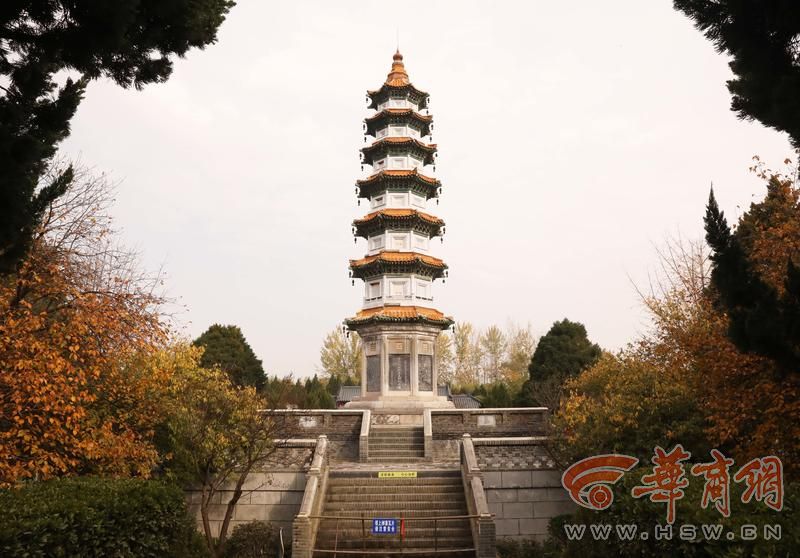 绕过宝殿,后院便是王重阳纪念塔。这座六面七层的石质宝塔高约十九米,攒尖顶直指苍穹,塔身雕刻着简洁的纹饰。塔前几株菊花悄然绽放,金黄的花瓣在秋风中摇曳,为这座古观添了几分清雅。传说塔下藏着王重阳的遗骨,千百年来,静静守护着这片全真道的发源地。我绕塔缓步而行,听着风吹过塔檐的铜铃轻响,心中满是对这位道教宗师的敬仰。