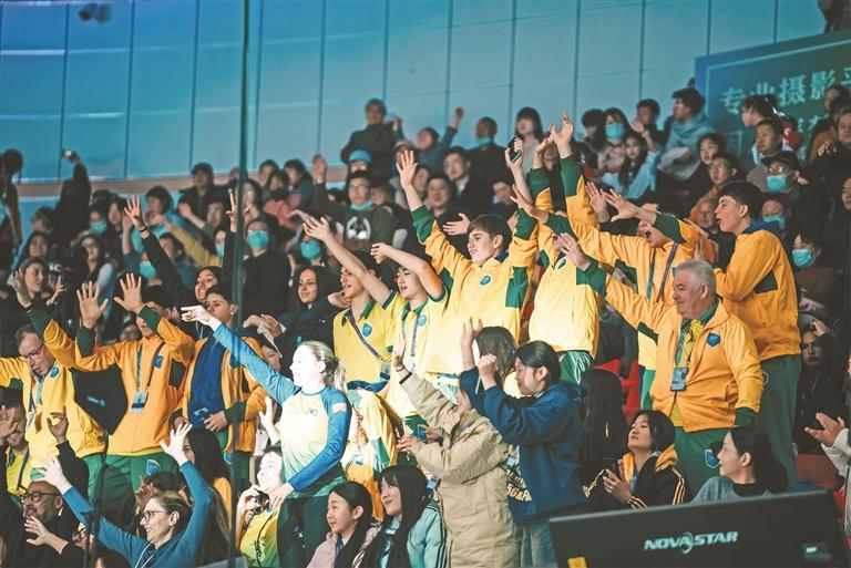 “加油!扣杀!”12月6日下午,在中国队与沙特阿拉伯队的比赛现场,运动员的每一次跳跃、每一次扑救都牵动着现场观众的心。面对身高臂长的沙特阿拉伯球员,中国队的小伙子沉着冷静,始终掌控着比赛节奏。在第一局以25∶11取胜后,中国队在第二局迎来了对手的强势反击。双方比分紧咬、交替上升。关键时刻,中国队顶住压力,凭借精准拦网与默契配合拉开比分,最终以25∶23锁定胜局。看台上,手持五星红旗的观众高声喝彩。年过六旬的商洛市民张建喜激动地说:“在家门口看世界级赛事,比自己打球还过瘾!这些少年太有拼劲了,让我看到了中国排球的未来。”