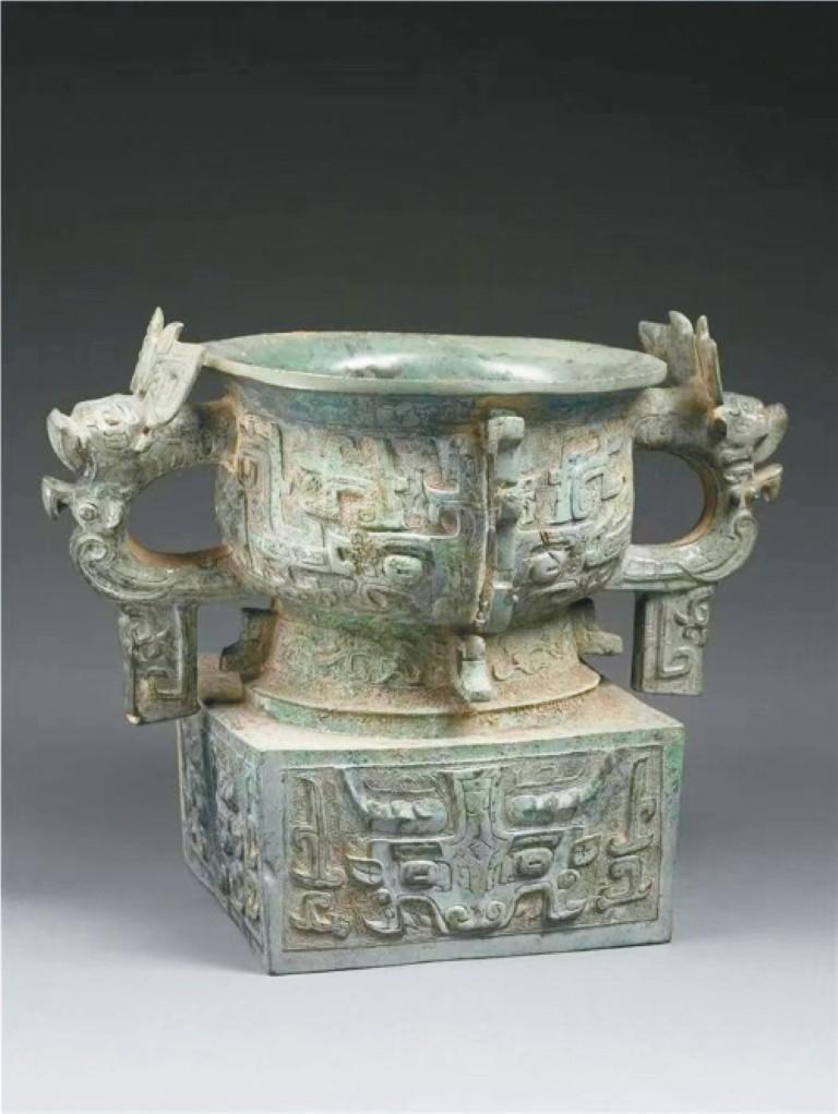 雷纹线条方折回旋,富有节奏与力量。宝鸡青铜器博物院藏的西周早期何尊,器身通体 以雷纹为底,庄重神秘,其铭文中更出现了最早的“中国”一词。