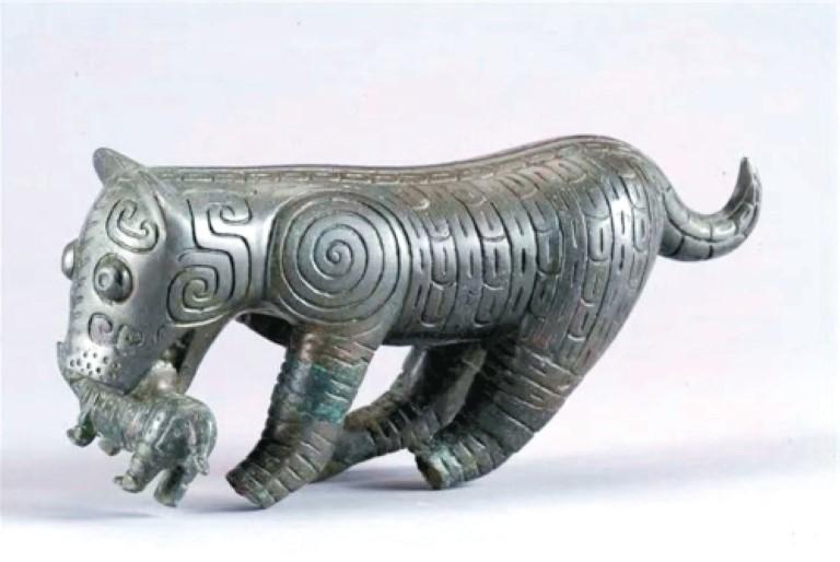 回纹形似“回”字,回环反复,寓意“富贵不断头”。其变体窃曲纹常见于西周中晚期。宝鸡青铜器博物院藏的西周四十二年逨鼎,口沿下便饰有一周典型的窃曲纹。陕西历史博物馆藏的金代青釉刻花三足鼎,颈肩部清晰饰有数圈回纹带,展现了后世对古代纹样的传承与模仿。