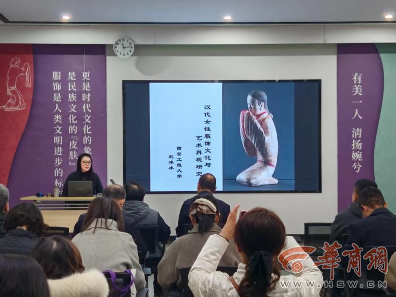 西安工程大学刘冰冰副教授受邀作了题为《汉代女性服饰文化和艺术再现研究》专题讲座。讲座在文献、图像、实物三重佐证研究方法的基础上对汉代女性服饰进行系统介绍,重点介绍汉阳陵出土的女性陶俑在服饰款式、结构、服色、虚拟模拟仿真等艺术再现实践的专项研究成果。