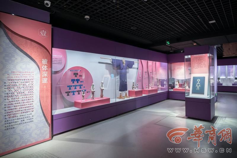 第一单元“被体深邃”,通过粉彩女俑、玉组佩等珍贵文物的展示,辅以深衣、襦裙、裈等汉代典型服饰复原对比展示,解读贵族礼服形式色彩规制以及普通女子的日常穿搭,让观众全方位感受汉代服饰的礼制内涵与实用智慧。