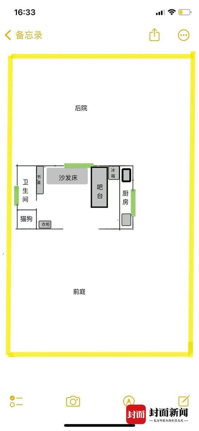 为了省钱,也为了“理想的模样”,设计和装修方面,他决定自己动手。设计图是用手机备忘录画的简单草图;硬装部分,如接水电、贴瓷砖、打龙骨等,全是人生第一次尝试。“贴瓷砖的时候,我需要切割,但我怕切割机,小时候被电过,有阴影。”这个心理障碍他克服了很久,也纠结过是否请工人,最终还是硬着头皮自己上,“切废、贴废了很多瓷砖,后面才慢慢顺了。”