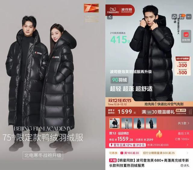左:北京电影学院羽绒服 右:波司登